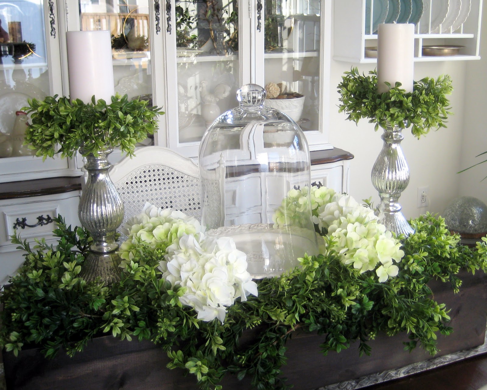 Sorry but I'm a "winter" person however when I see your fabulous greens/cloche/wooden box centerpiece, I do think spring! Your combination of everything looks fabulous! I'd love a box like that to decorate!